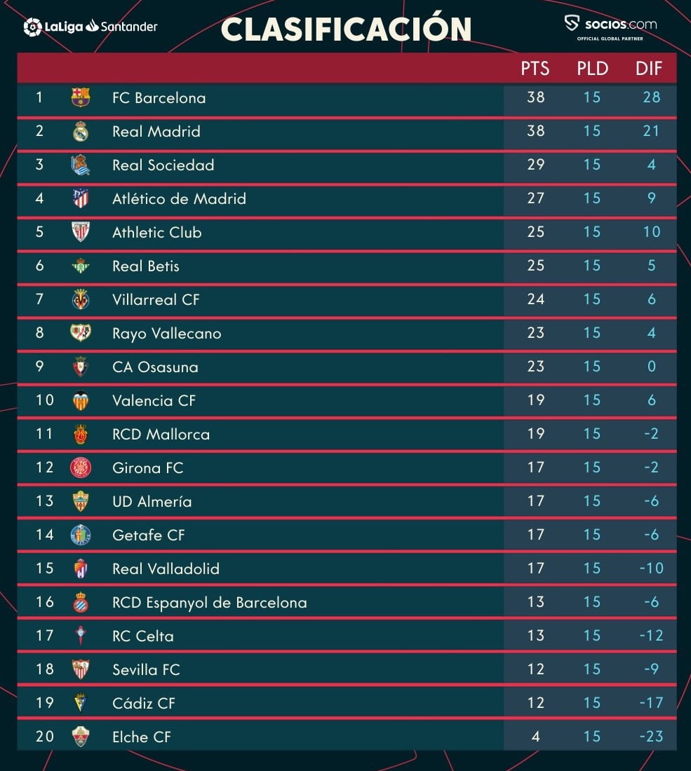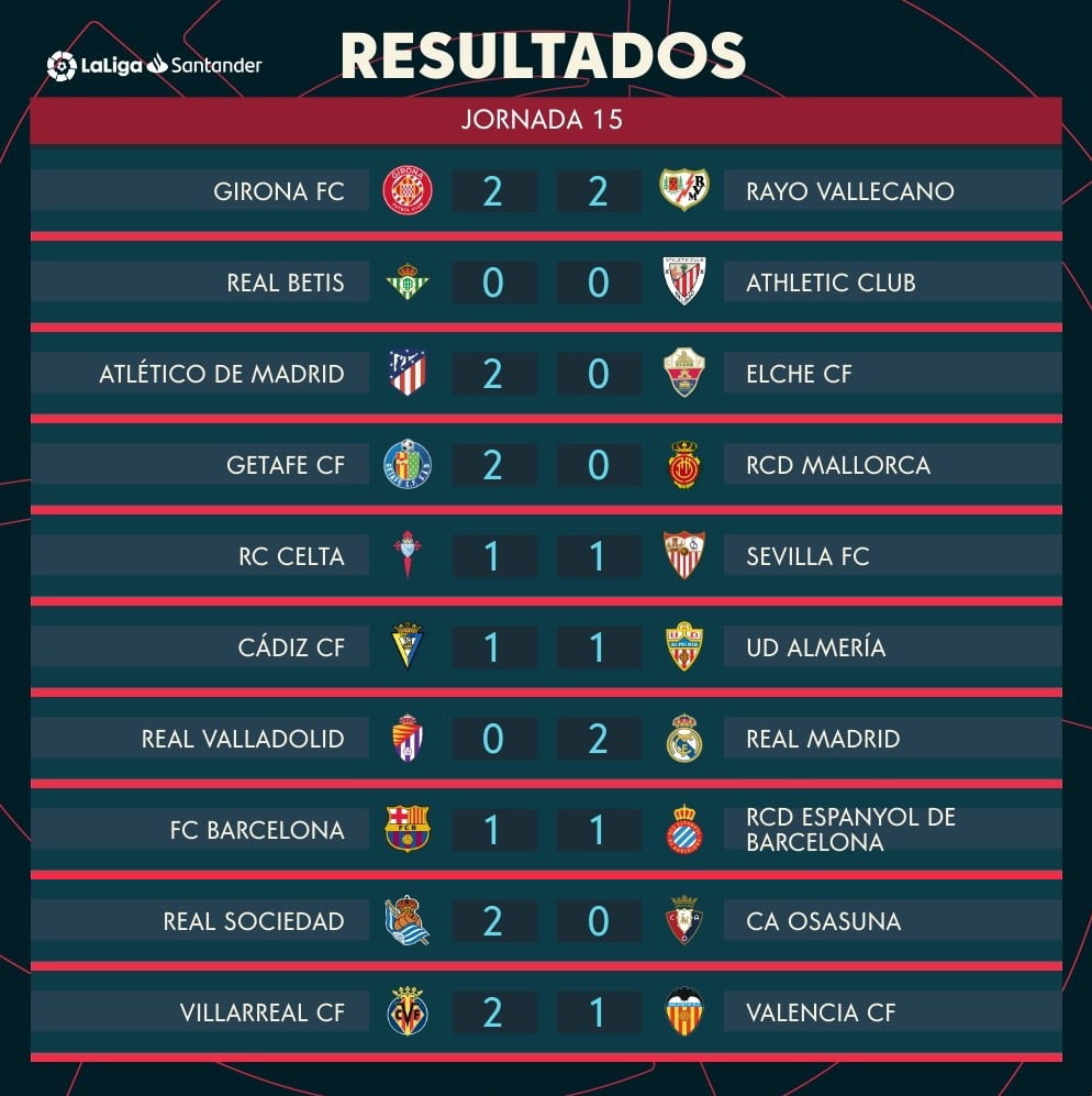 بعد غياب دام ازيد من الشهر والنصف، عادت مواجهات الدوري الاسباني ( الليغا ) للدوران من جديد، بإجراء الدورة 15 والأخيرة برسم سنة 2022. 11