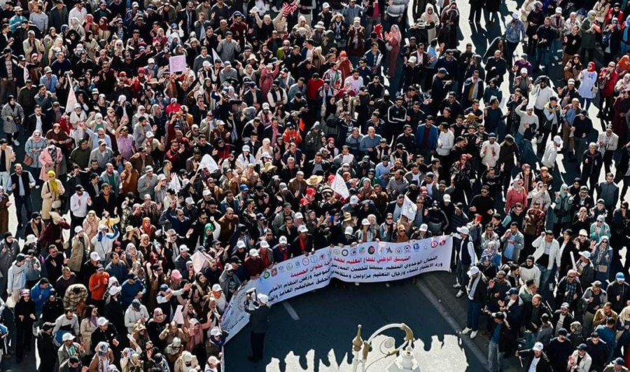وشهدت مدن مغربية أخرى وقفات ومسيرات احتجاجية اليوم، طالب خلالها المحتجون المنتمون لأزيد من 25 تنسيقية فئوية ونقابة تعليمية بإسقاط ما أسموه بنظام “المآسي”، وتعويضه بآخر عادل ومحفز، يعيد الكرامة للأساتذة.