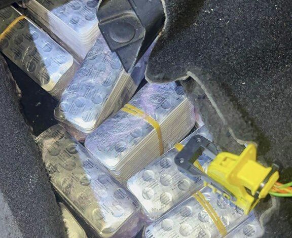 وأسفرت عملية التفتيش عن حجز 102 ألف قرص طبي مخدر من نوع “ريفوتريل”، كان مدسوسة بعناية داخل تجويف معد بهيكل هذه السيارة.