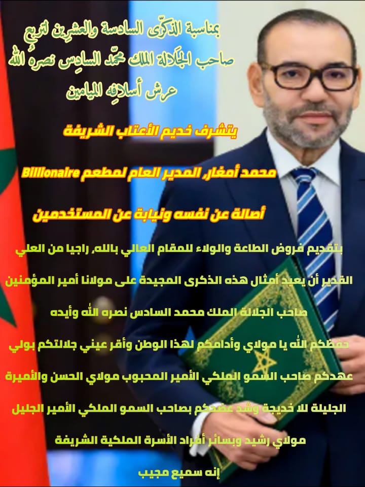 يتشرف السيد محمد أمغار، المدير العام لمطعم Billionaire أصالة عن نفسه ونيابة عن المستخدمين