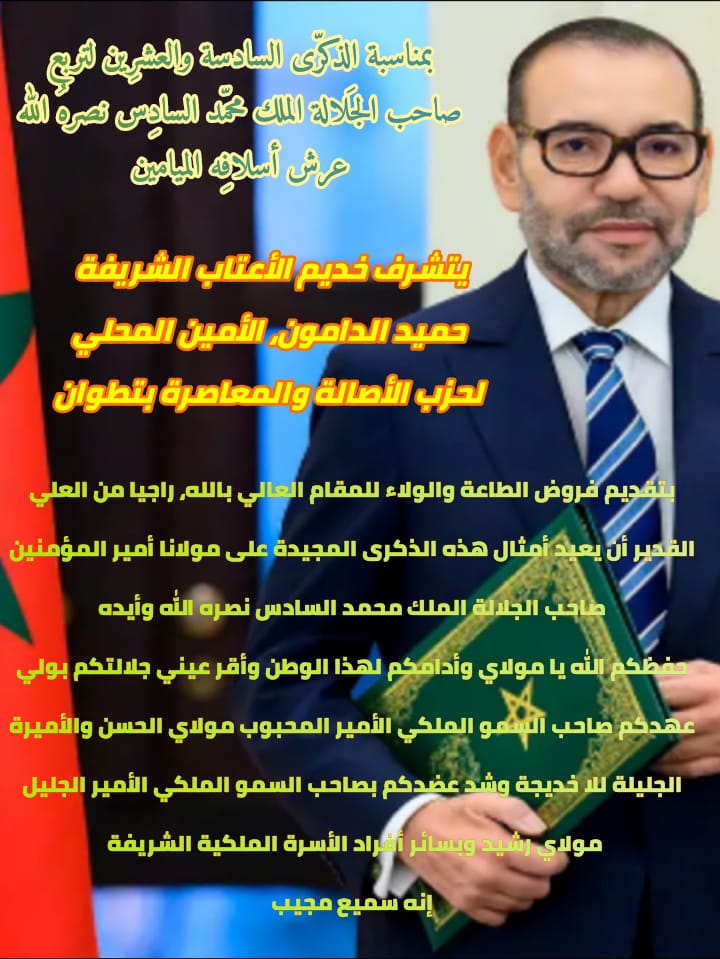 يتشرف حميد الدامون الأمين المحلي لحزب الأصالة والمعاصرة بتطوان أصالة عن نفسه ونيابة عن أعضاء الحزب