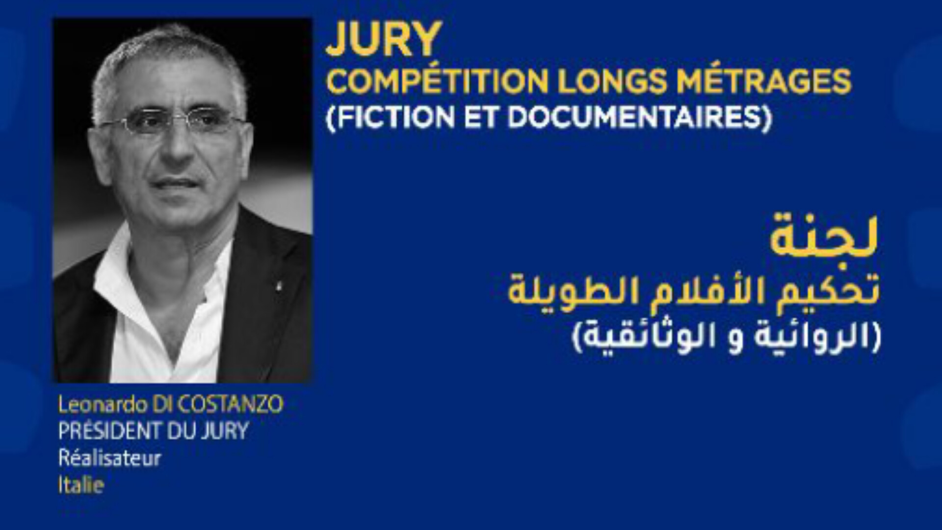 ويرأس لجنة تحكيم الأفلام الطويلة المخرج الإيطالي ليوناردو دي كوستانزو، المعروف بأفلامه التي تلامس بواقعية قضايا اجتماعية وإنسانية عميقة، مثل “الفاصل الزمني” و”القفص الداخلي”. ويشارك إلى جانبه كل من المخرجة المغربية أسماء المدير، صاحبة الفيلم الوثائقي “كذب أبيض”، والممثل والمخرج الفرنسي سيرج باربوتشيا، والمنتجة البرتغالية إيزابيل ماتشادو، إضافة إلى المخرج المصري أمير رمسيس.