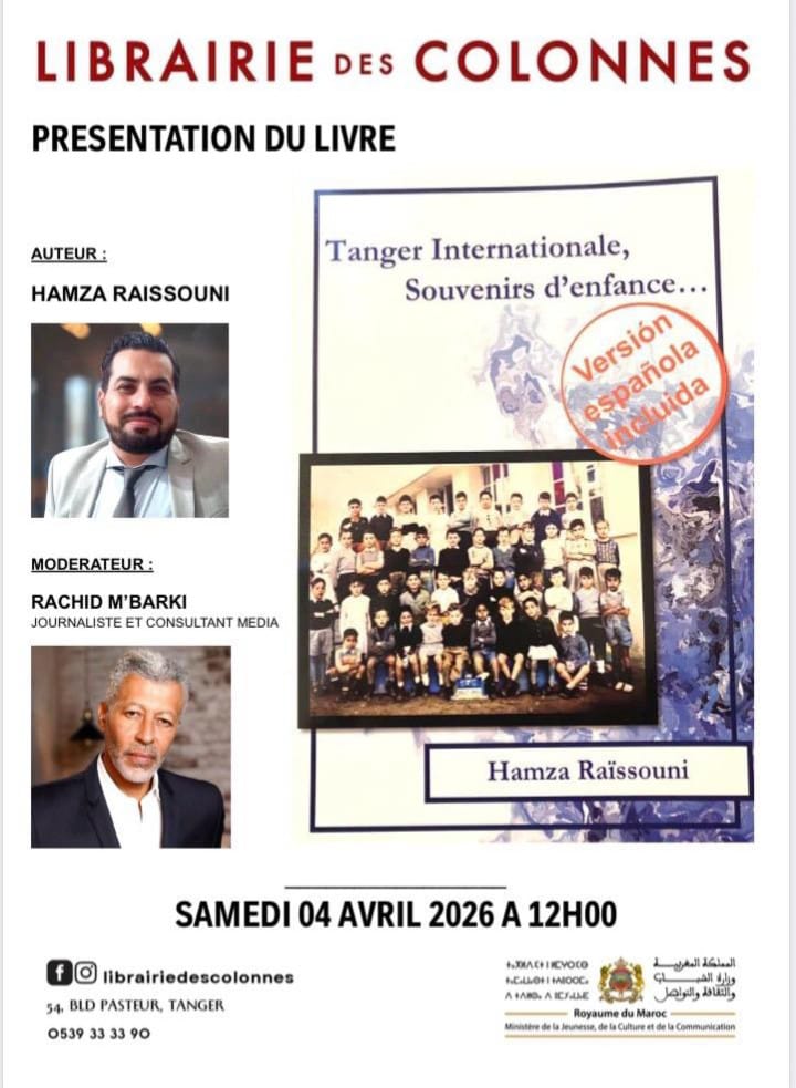 في إطار الأنشطة الثقافية بمدينة طنجة، يُنظم لقاء أدبي لتقديم وقراءة كتاب “طنجة الدولية… ذكريات الطفولة”، من تأليف المهندس حمزة الريسوني.